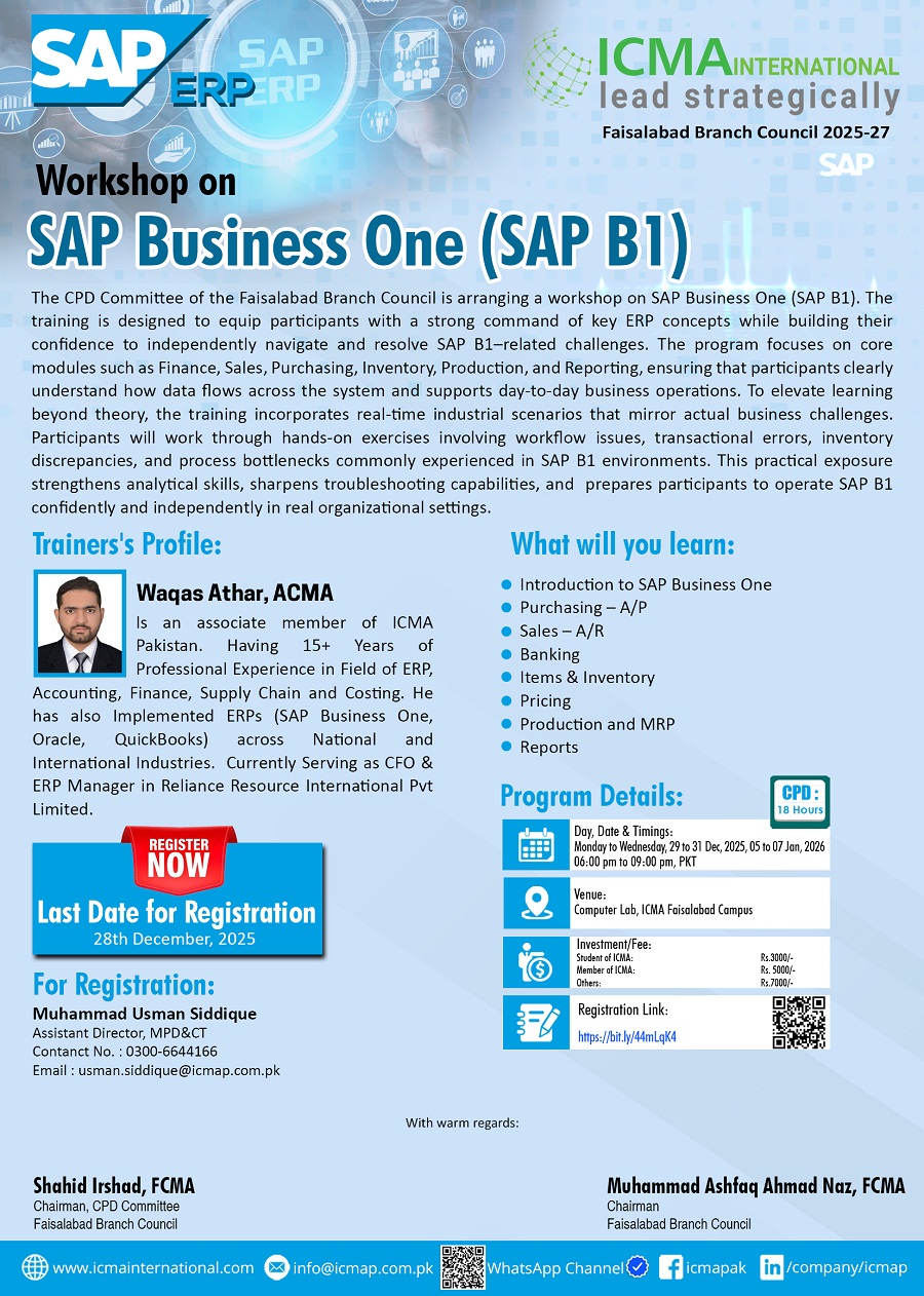 Established in 1951, the Institute of Cost and Management Accountants of Pakistan is the driving force